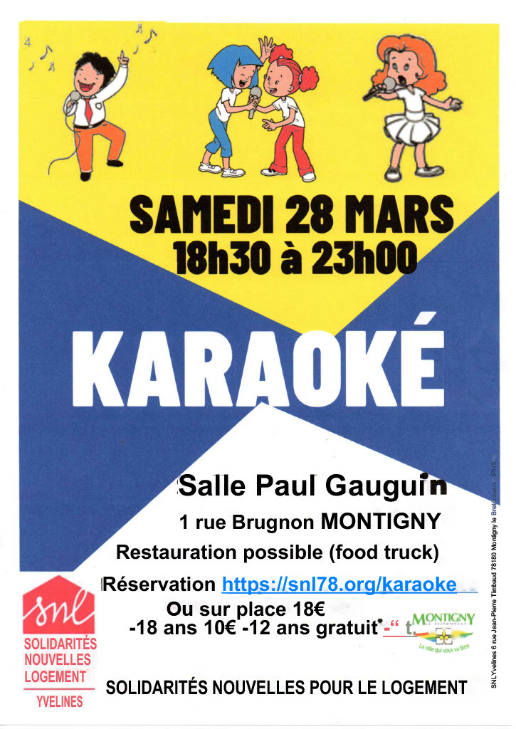 - Entrée 18€, 10€ pour les moins de 18 ans gratuit pour les moins de 10 ans avec possibilité de réserver en ligne https://snl78.org/karaoke